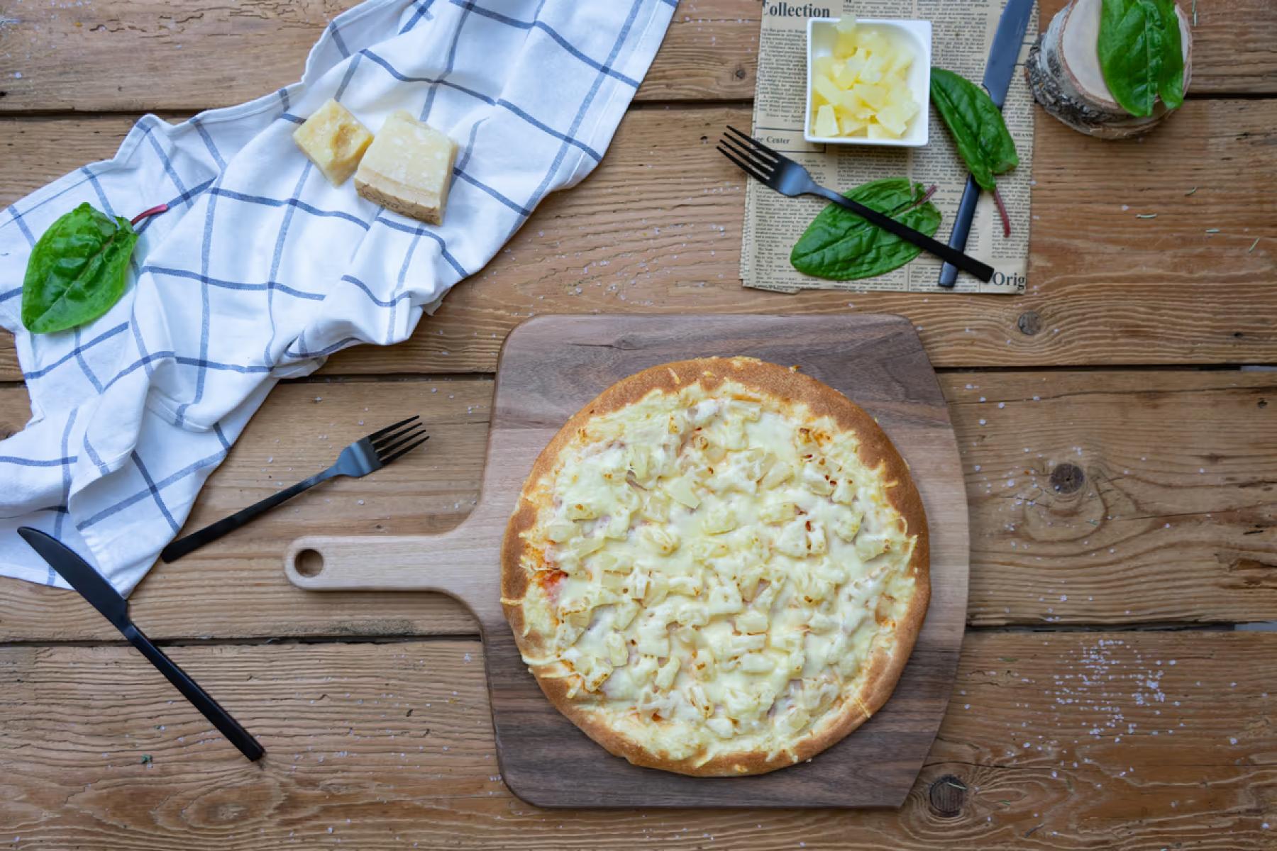 • Hawaii I. Paradicsomszósz, sajt, sonka, kukorica, ananászGluténTej