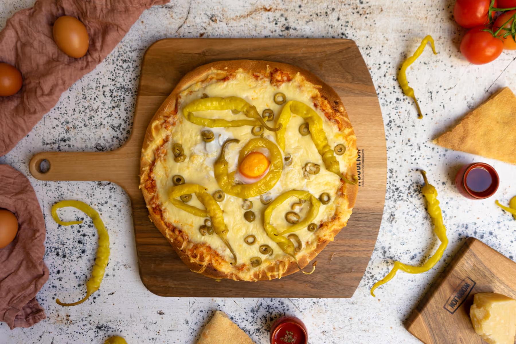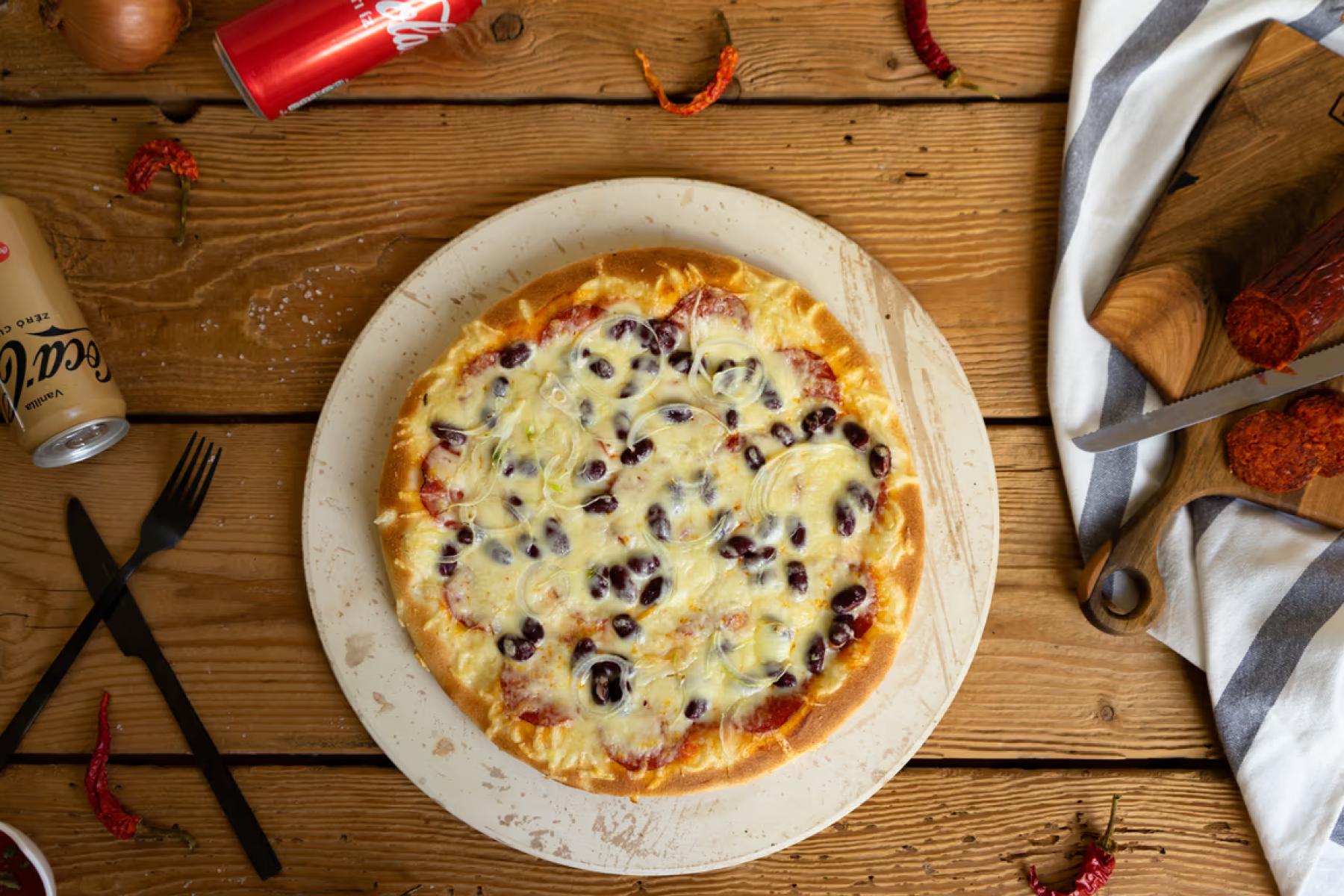 • Al Capone Paradicsomszósz, sajt, sonka, darált hús, olívabogyó, pepperóni paprikaGluténTejTojás
